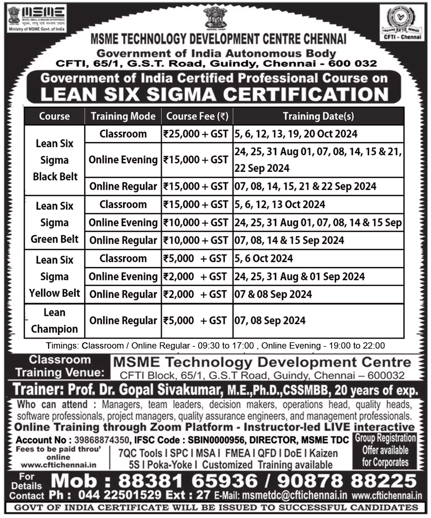 In the ever-evolving landscape of professional development, the pursuit of knowledge and skills is a journey that leads to personal and career growth. For those aspiring to excel in the field of Lean Six Sigma, a golden opportunity has emerged with the C2C Scholarship Program by MSME, Government of India, offering a remarkable 40% scholarship for the Lean Six Sigma Global certification.